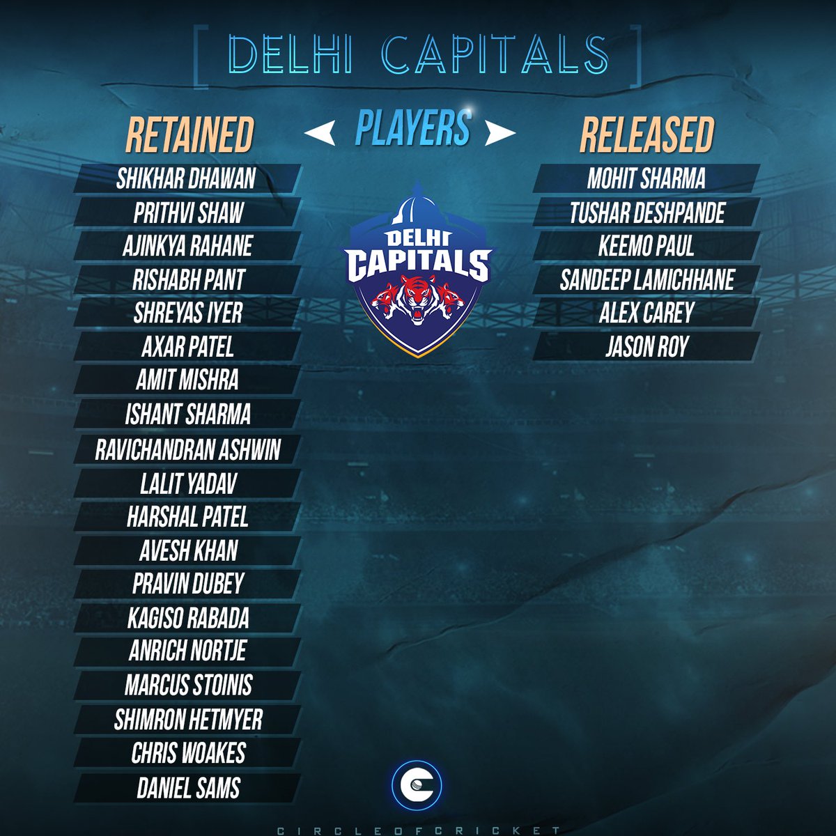 Delhi capitals retained players 2021. Delhi capitals full squad and player list for ipl 2021. So it is not surprising that they have released only six players. Despite boasting of several big players over the years, delhi has never won the title. Shreyas iyer (c), shikhar dhawan, prithvi shaw, ajinkya rahane, rishabh pant, axar patel, amit mishra, ishant sharma, r ashwin, lalit yadav, harshal patel, avesh khan, pravin dubey, kagiso rabada.